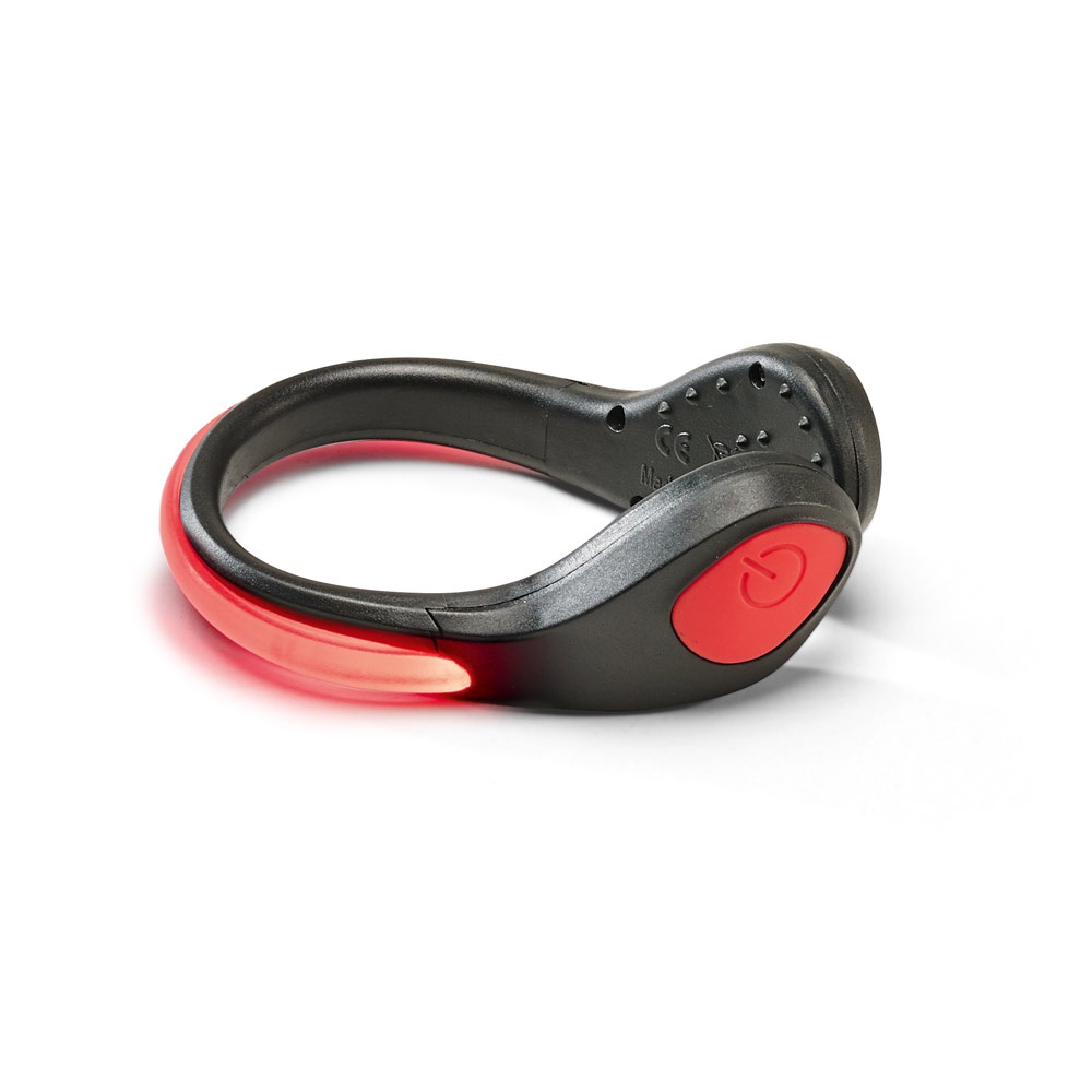 Luz refletora em ABS e PVC com 2 LEDs e 2 modos de luz, ideal para sapatilhas. Inclui 2 pilhas CR2016. 63 x 89 x 28 mm
