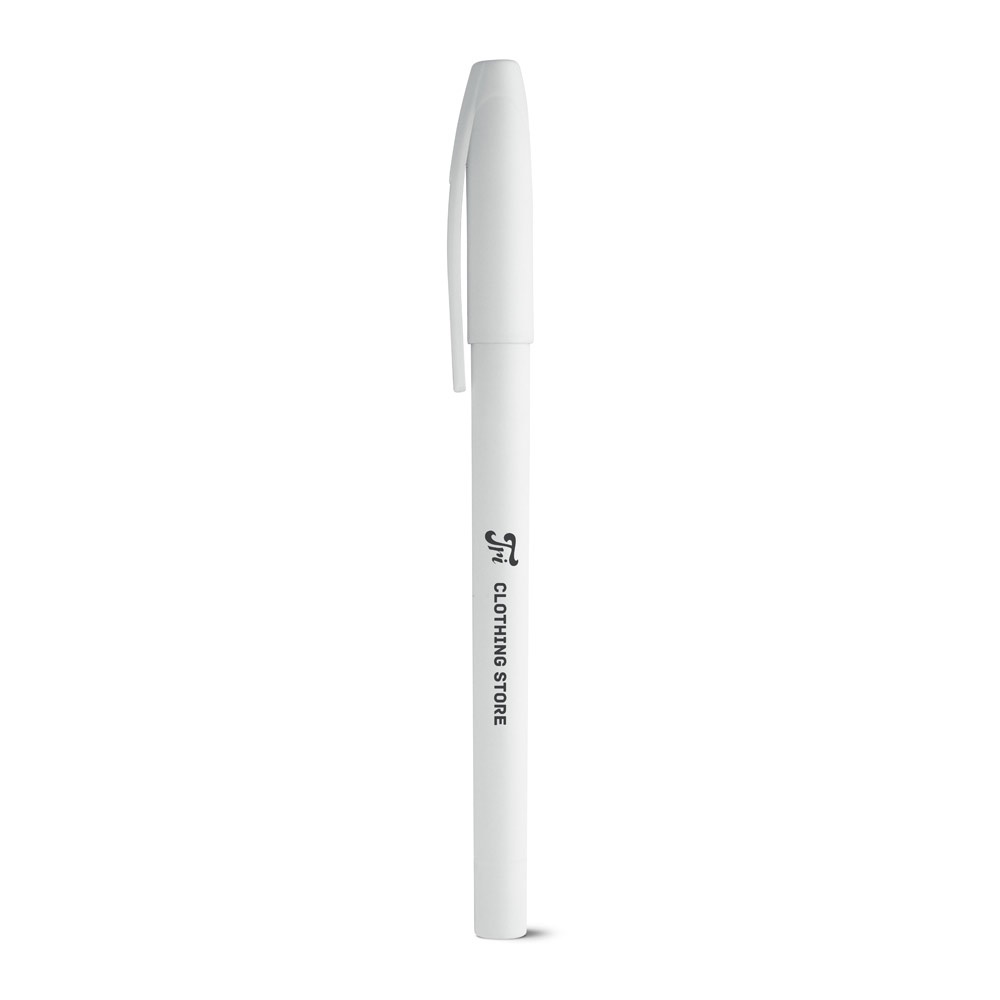 Esferográfica em PP com clipe. Corpo e tampa em cor opaca. Escrita a azul. ø10 x 142 mm